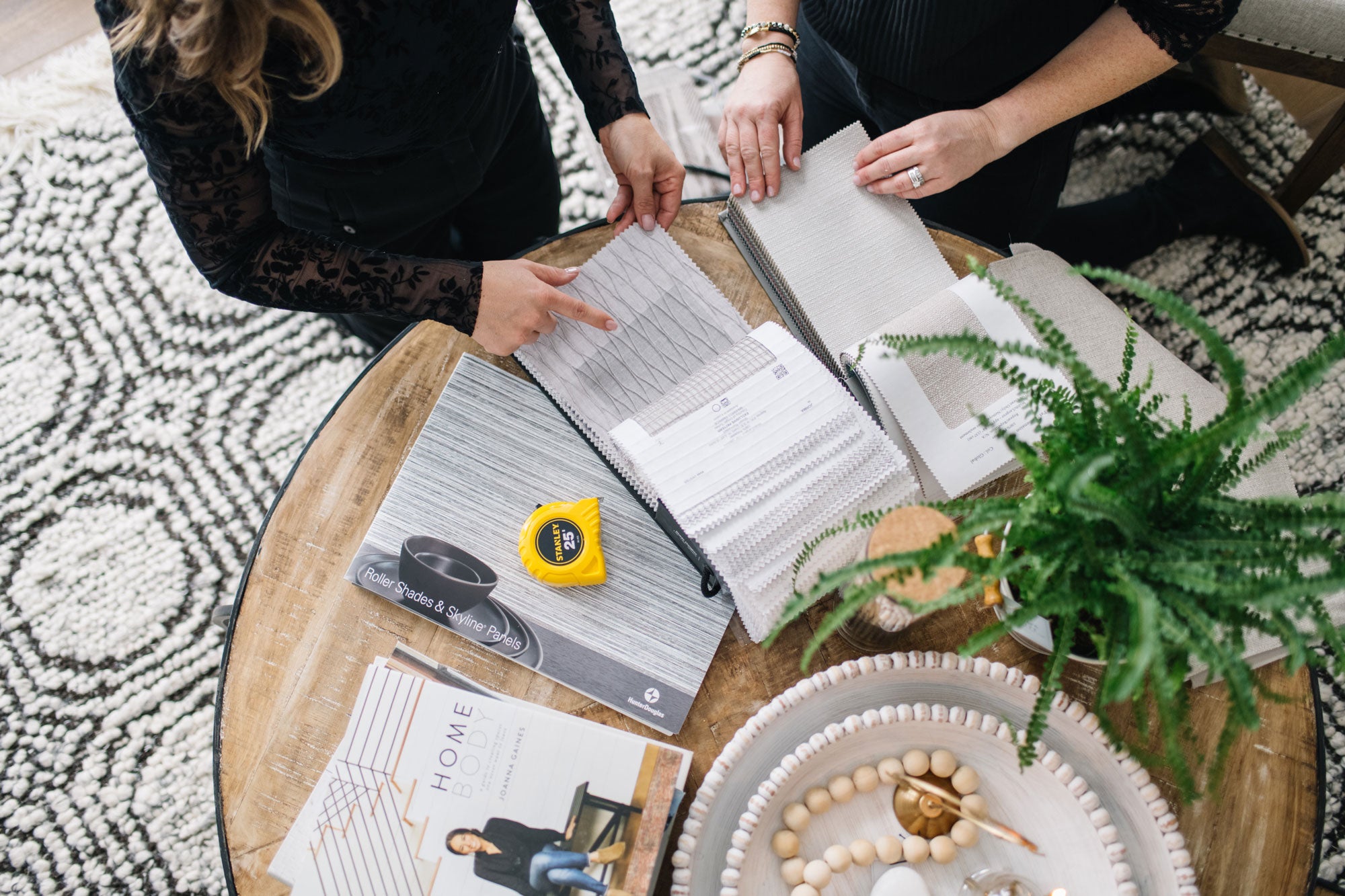 Simone & Ivy focuses on styling - furniture selection and layout, decor and accessory selection, rug and art curation, and the thoughtful placement of every piece. We do not provide selections for hard finishes such as paint, flooring, cabinetry, or countertops. We are not interior designers - but if that is what you are looking for, we would be happy to connect you with a trusted partner.